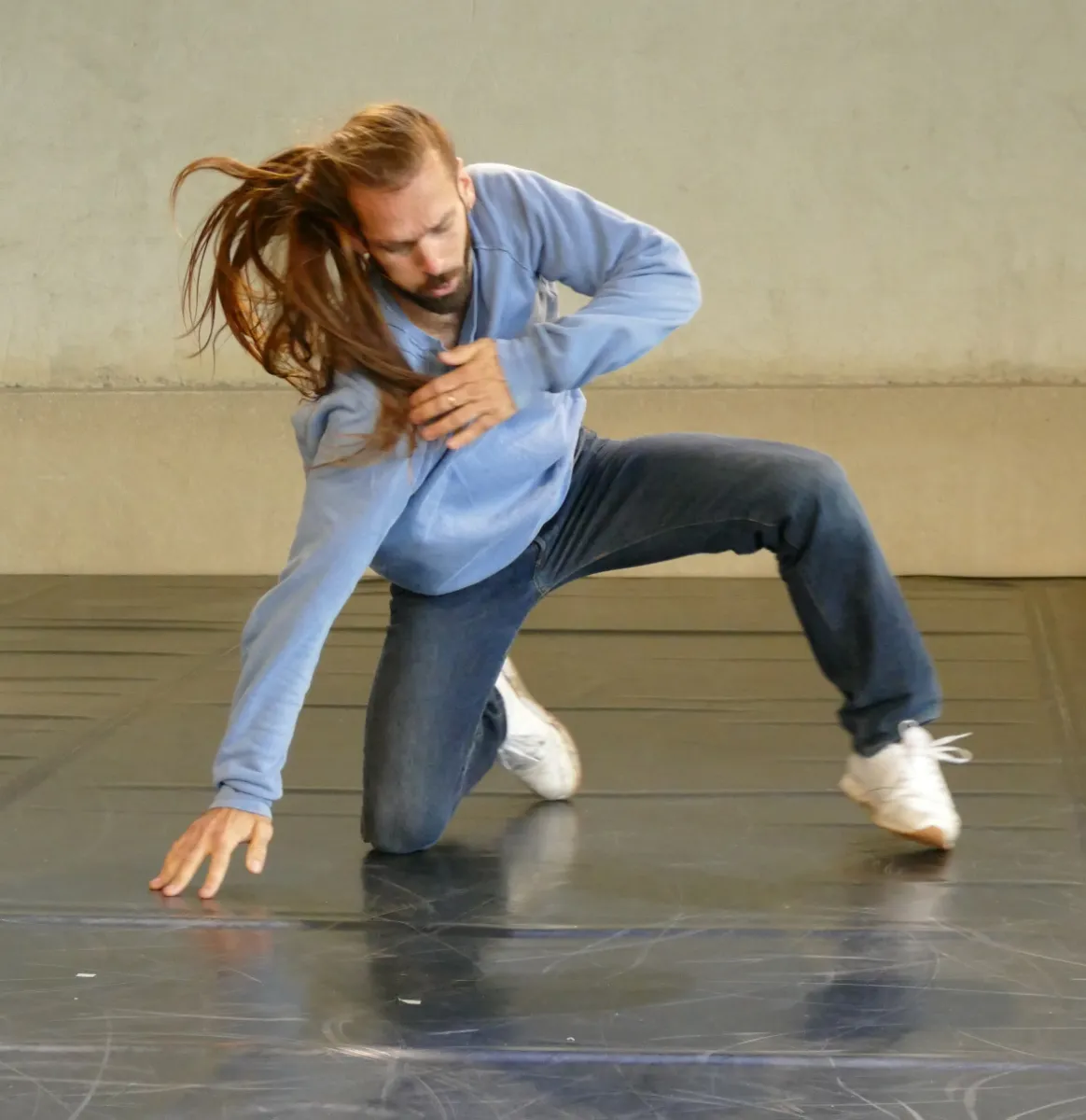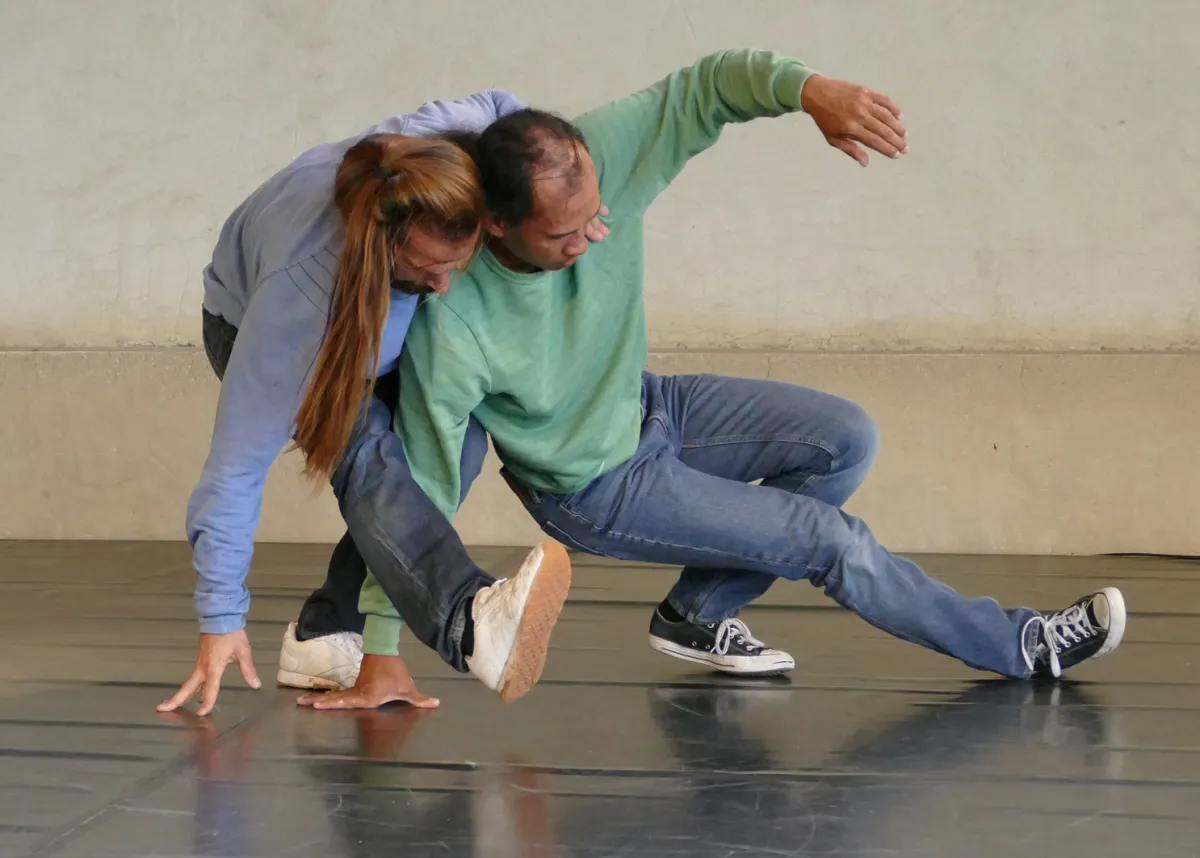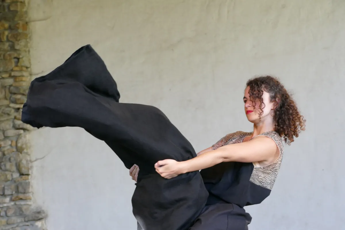 À Précy-le-Moult, dans le cadre de la quatrième édition de "Tour de danse(s)". Présentation d'étape de création. Avec la danseuse et chorégraphe Julie Gouju (Compagnie L'inesthétique) et le beatboxer Scratchy (qui pratique le krump).